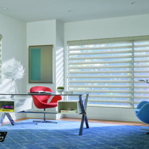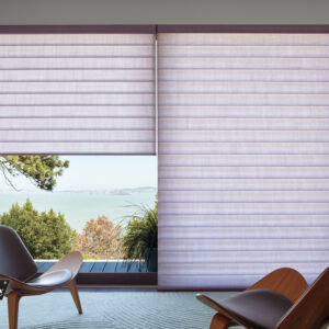 Luxaflex® Pirouette® Shades feature soft fabric ‘floating’ vanes attached to a sheer backing.