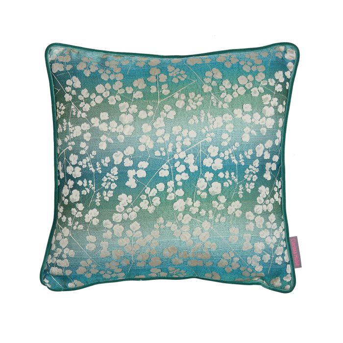 Designed by British Artist Clarissa Hulse. Back is plain teal velvet. Includes feather cushion inner. Printed and made in the UK.